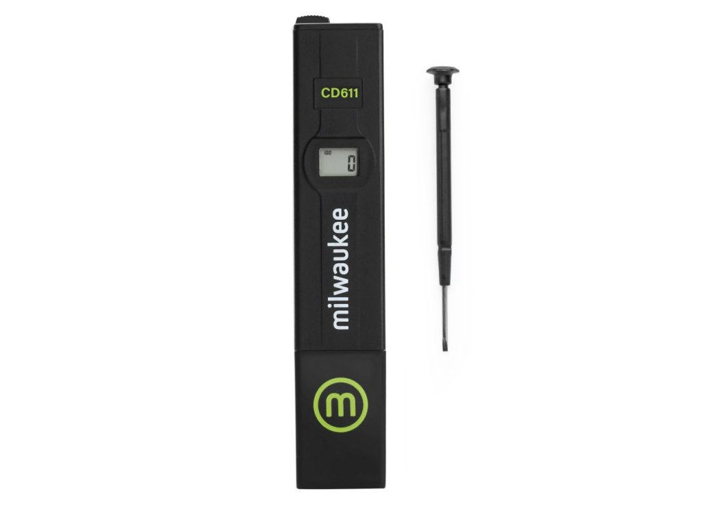 Milwaukee CD611 EC metr - za velmi přívětivou cenu s jednoduchým ovládáním, rozsah: 0,0 - 20,0 mS/cm, rozlišení: 0,1 mS/cm, přesnost: ± 2% v celém rozsahu