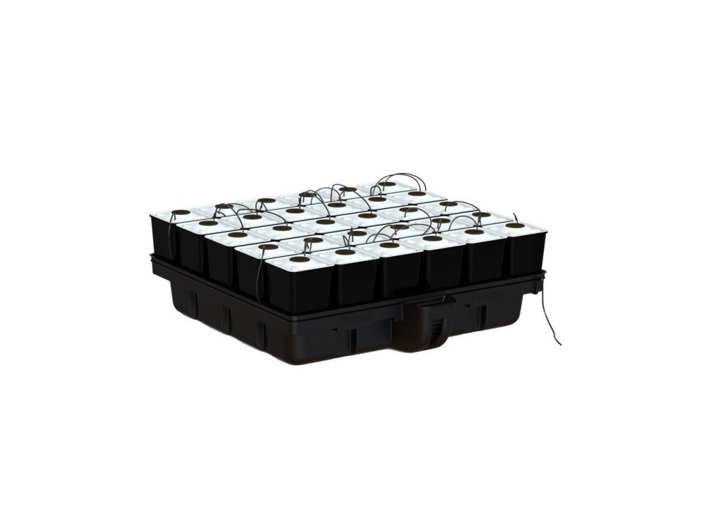 Aeroponický systém populární pro svou výhodnou cenu a spolehlivost. Velikost: 120x120x39 cm. 30 květníků x 6 l. 30 rozprašovacích trysek 360°. Zásobník pojme max. 110 l roztoku. Pumpa má maximální průtok 4500 l/hod.